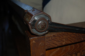 The strycsitten I wanted to make is intended to be used at the dining table in my living room. (Although suitable for re-enactment, its size is far too large to move it around in a simple car.) My dining table is 1.40 metres long, so the length of the strycsitten had to be approximately like that. Furthermore, the seating height had to be comfortable for modern length persons (e.g. me and my family), meaning a seating height of approximately 45 cm. My first intention was to use the Loevestein plan for the strycsitten, but later I changed it to the one depicted in the painting of the Meister of Schoppingen. In the end, my plan was an adaption of the latter and looked like this: